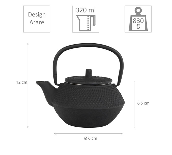 teeblume gusseiserne Teekanne Arare, 0,3 Liter, mit Sieb, schwarz